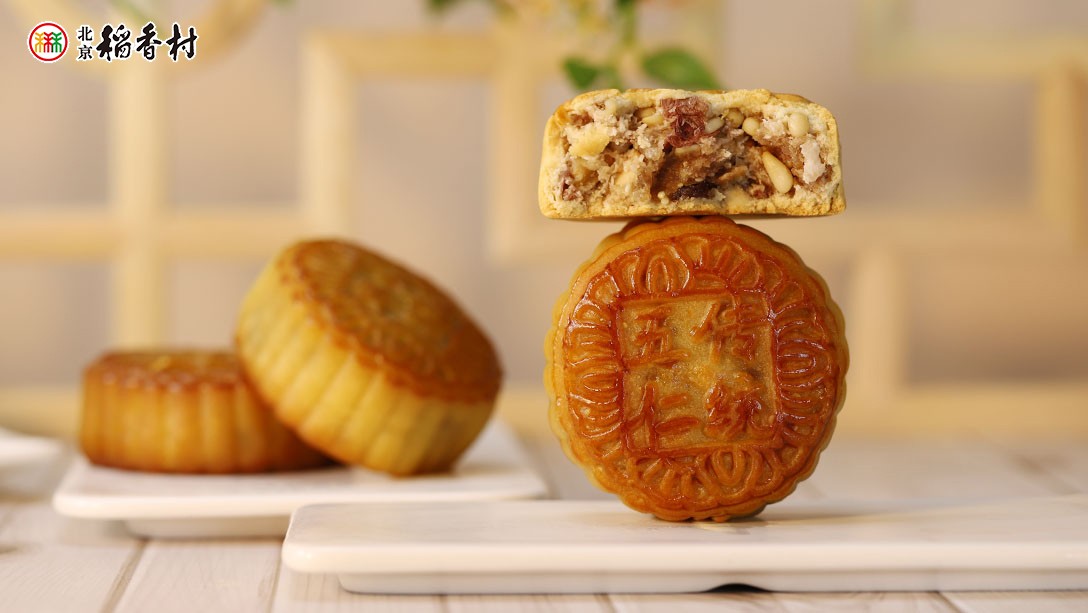 主料:五仁馅(含核桃仁、芝麻仁、西瓜籽仁、杏仁、松仁)、小麦粉