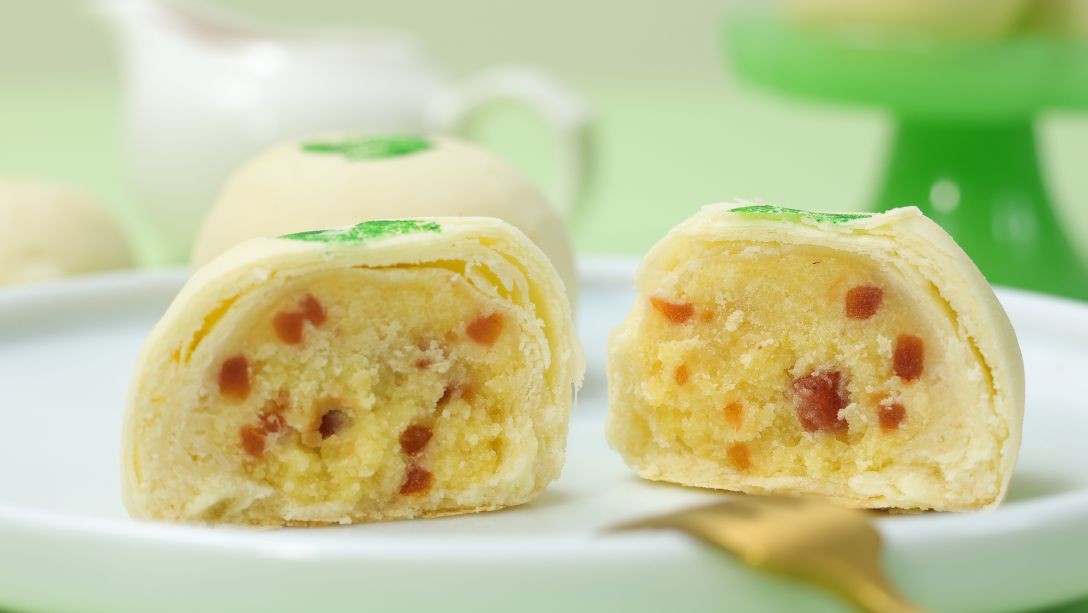 主料:绿豆山楂馅、小麦粉、奶油、食用猪油、白砂糖